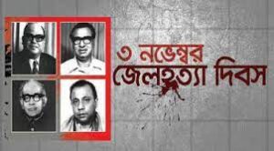 মানবতাবোধের চরম নির্মমতা ও নিষ্ঠুরতার সাক্ষী হচ্ছে ৩ নভেম্বর জেলহত্যা দিবস। দেশের আপামর জনতা যাদের নেতৃত্বে ও নির্দেশে এদেশের মুক্তির সংগ্রামকে এগিয়ে নিয়ে মাত্র নয় মাসের রক্তক্ষয়ী যুদ্ধে স্বাধীন করেছিল, যারা মুক্তিযুদ্ধকালীন মুজিব নগর সরকারের বিভিন্ন রাষ্ট্রীয় দায়িত্ব পালন করে এদেশের জনগণকে একত্রিত করে ও দেশের স্বাধীনতা সংগ্রামকে বেগবান করে বিজয়ের পতাকা উচিয়ে ধরেছিল, সেই জাতীয় চার নেতাকে চরম নির্মমভাবে কারা অভ্যন্তরে রাতের অন্ধকারে হত্যা করা হয়।