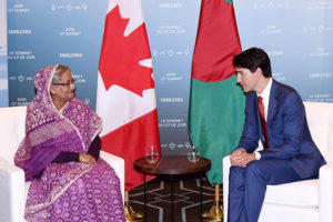 এ সময় শেখ হাসিনা রোহিঙ্গা ইস্যুতে বাংলাদেশকে সাহায্য ও সমর্থন দেওয়ার জন্য কানাডার সরকারের প্রতি ধন্যবাদ জানান। তিনি বলেন, মিয়ানমার সরকার রোহিঙ্গাদের প্রত্যাবর্তনের জন্য বাংলাদেশের সঙ্গে একটি চুক্তি করেছে। কিন্তু যখন এটি বাস্তবায়নের প্রশ্ন এসেছে, তখনই তাঁরা নীরব ভূমিকা নিয়েছে।