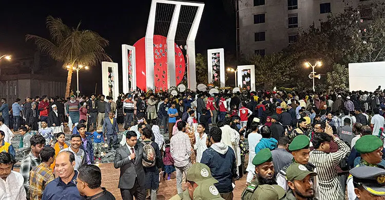ভাষা শহীদদের প্রতি শ্রদ্ধা জানাতে শহীদ মিনারে মানুষের ঢল