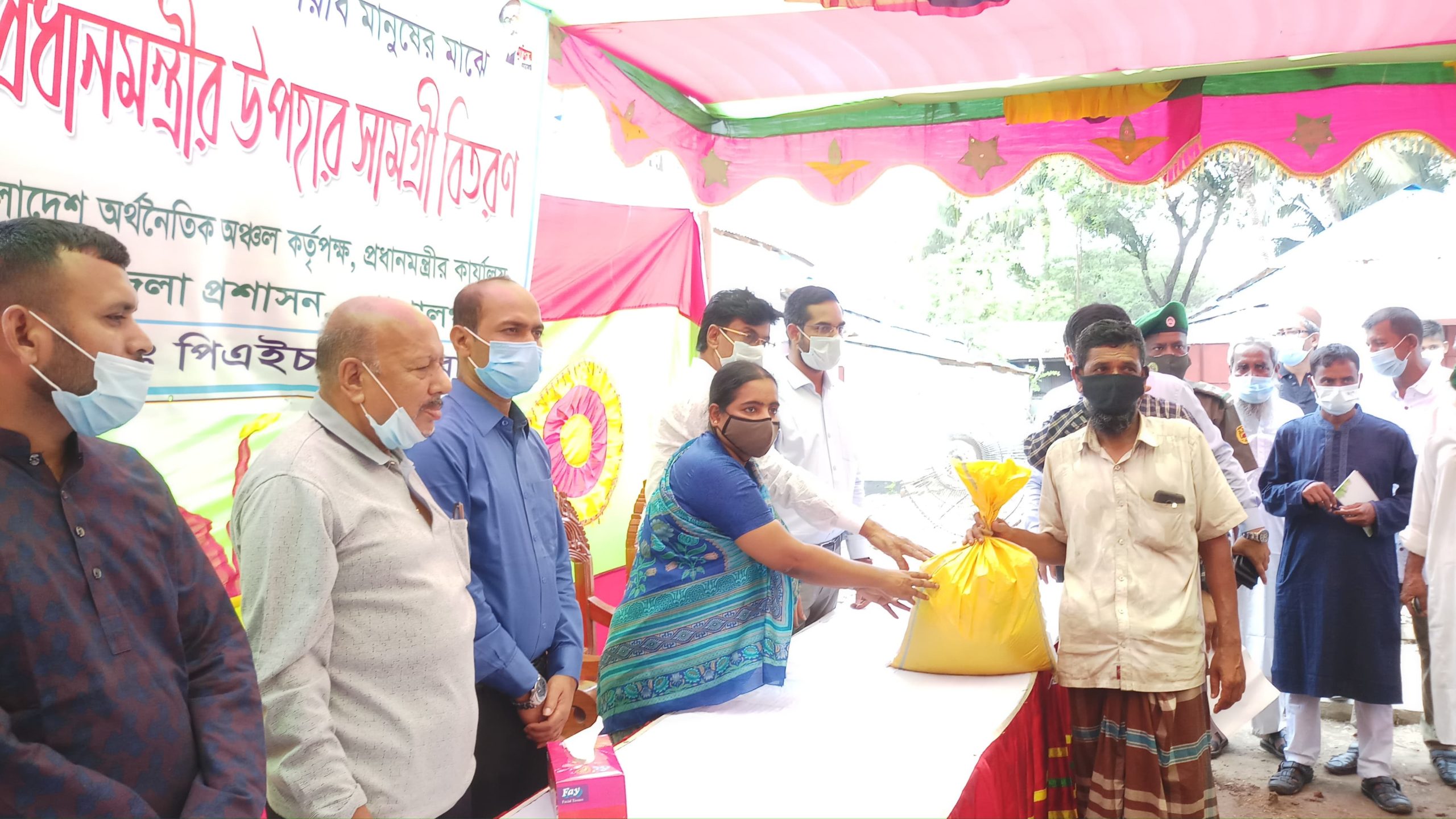 গোপালগঞ্জের মুকসুদপুরের আশ্রয়নকেন্দ্রে মহামারী কোভিড-১৯ এর কারনে ক্ষতিগ্রস্থ অসহায়, দু:স্থ, গরীব ও কর্মহীন পরিবারের মাঝে মাননীয় প্রধানমন্ত্রীর ঈদ উপহার সামগ্রী বিতরণ করা হয়েছে। সোমবার (১০ মে) দুপুরে গোপালগঞ্জ জেলা প্রশাসনের আয়োজনে, পিএইচপি পরিবারের সহযোগিতায়, বাংলাদেশ অর্থনৈতিক অঞ্চল কর্তৃপক্ষ প্রধানমন্ত্রীর কার্যালয়ের বাস্তবায়নে মুকসুদপুর উপজেলার খান্দারপাড়া ইউনিয়নের বেজড়া আশ্রয়নকেন্দ্রের ১৮ টি পরিবারের মাঝে ঈদ সামগ্রী ও ১৫ টি পরিবারের মাঝে শিশু খাদ্য বিতরণ করা হয়।