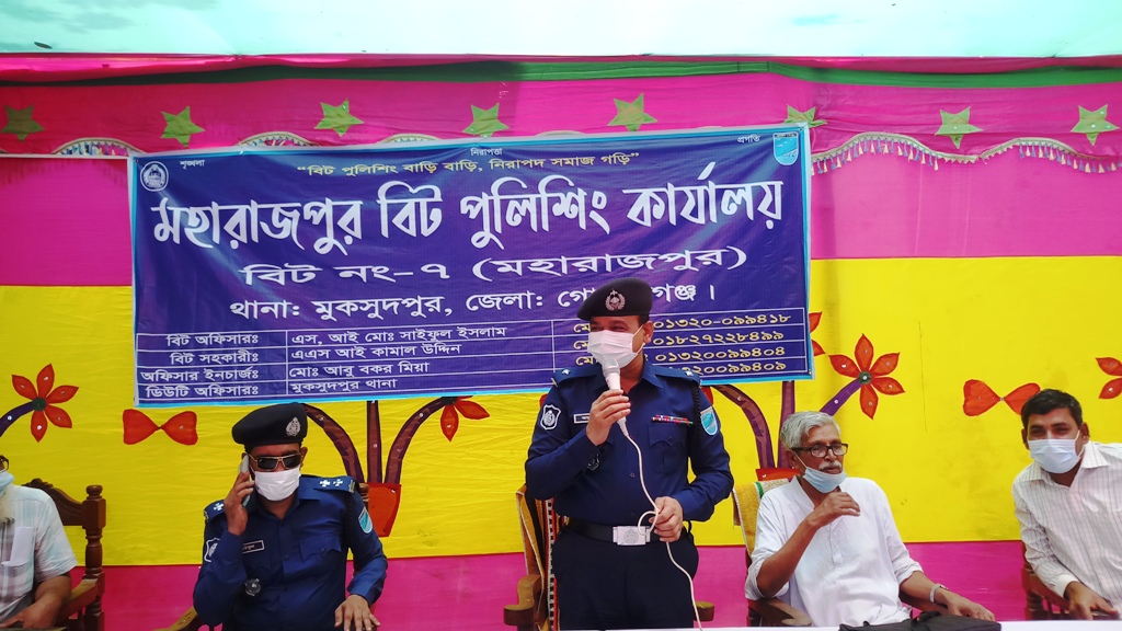 মহারাজপুর বিট পুলিশিং সভার প্রধান অতিথি ছিলেন মুকসুদপুর থানার ওসি আবু বকর মিয়া। মুকসুদপুর থানার সেকেন্ড অফিসার সাইফুল ইসলামের সঞ্চলনায় অনুষ্ঠানে বক্তব্য রাখেন মহারাজপুর ইউপি চেয়ারম্যান আশরাফ আলী আশু মিয়া, উপজেলা আওয়ামী লীগের সাংগঠনিক সম্পাদক সালাউদ্দিন মিয়া, মহারাজপুর ইউনিয়ন আওয়ামী লীগের সভাপতি সাহাদাৎ হোসেন মুন্সী প্রমুখ।