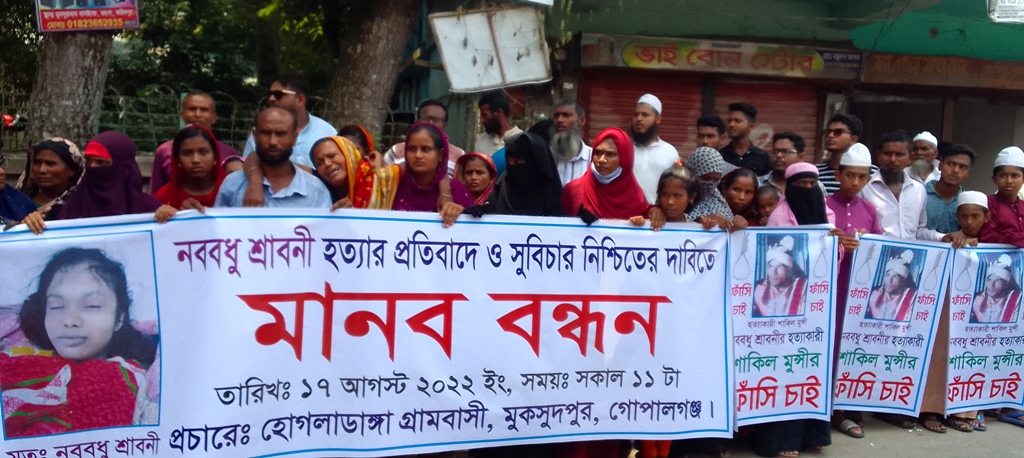 মেহের মামুন (মুকসুদপুর) গোপালগঞ্জ, সংবাদদাতা গোপালগঞ্জের মুকসুদপুরে বিয়ের পাঁচ দিনে নববধূ শ্রাবনী আক্তার হত্যার প্রতিবাদে ও স্বামী শাকিল মুন্সীসহ...